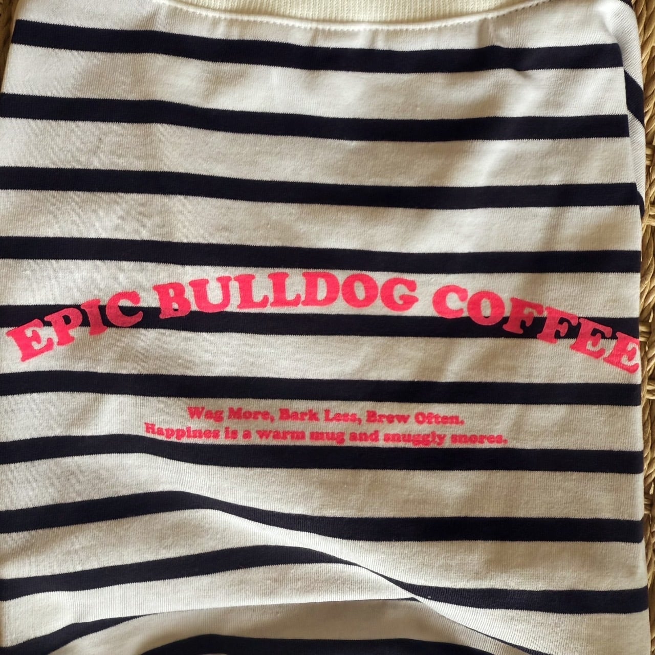 架空のドッグフレンドリーなコーヒーショップをイメージして、そのショップの温かみのあるメッセージをプリントしました。