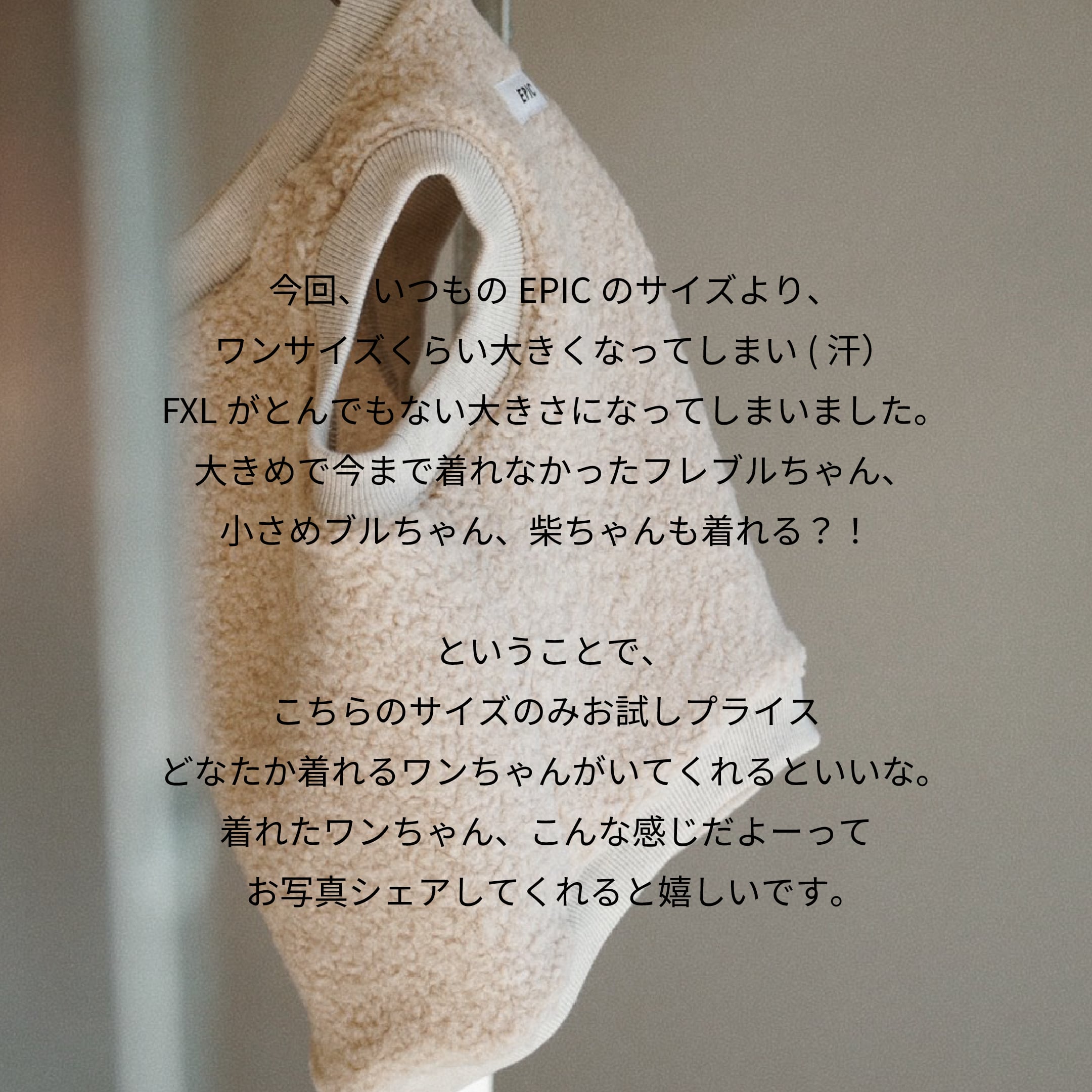 小さめブルちゃんはXLを着ていただけるんじゃないかと思ってます。わがままボディで今までサイズがなかったフレブルちゃんもXLは着れるかな?柴ちゃんとはどうでしょうか?